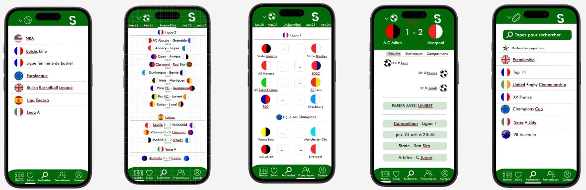 Nous avons choisis de concevoir une application sportive innovante associant dimension sociale et design moderne. Les utilisateurs sont en capacité à la fois de voir des résultats de plusieurs sports et de pronostiquer gratuitement entre amis.